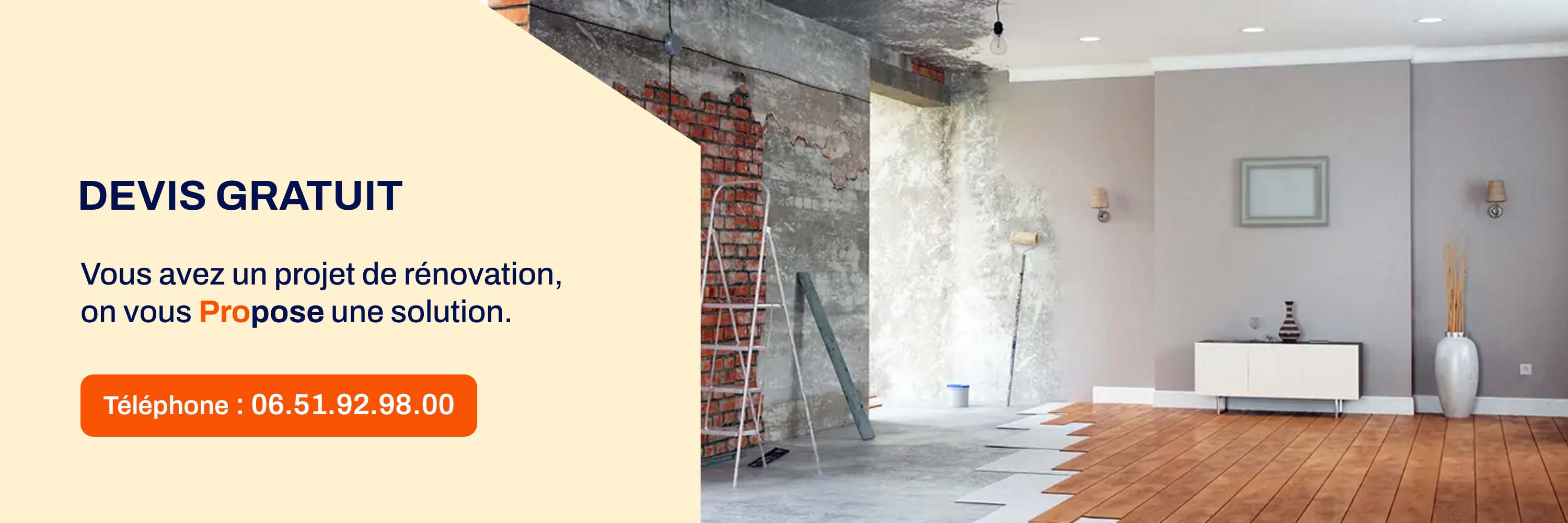 Obtenir un devis pour votre projet de rénovation est simple et entièrement gratuit. Il vous suffit de nous contacter via notre site web, par téléphone, ou par email. Un de nos conseillers vous rappellera sous 24 heures pour convenir d'une date de rendez-vous. Lors de ce rendez-vous, l'un de nos professionnels se rendra directement sur place pour évaluer votre projet et estimer le montant des travaux. Nous vous fournirons ensuite un devis détaillé et transparent, adapté à vos besoins.